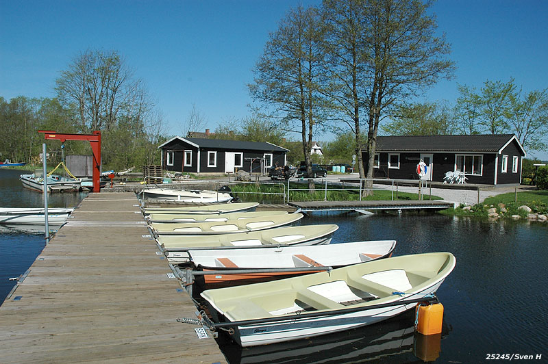 Västerut mot Vombsjön finns en liten hamn med båtbrygga. Här kan fiske-intresserade hyra båt.